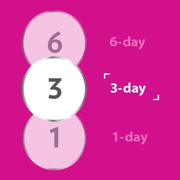Different dosages to suit your preference: 1-day Canesten® or CanesOral® treatments are convenient and effective and continue working several days until the infection is cured, 3-day Canesten® treatments allow you to feel the product take effect during treatment, and our 6-day Canesten® treatment is recommended for those who prefer to treat for longer.