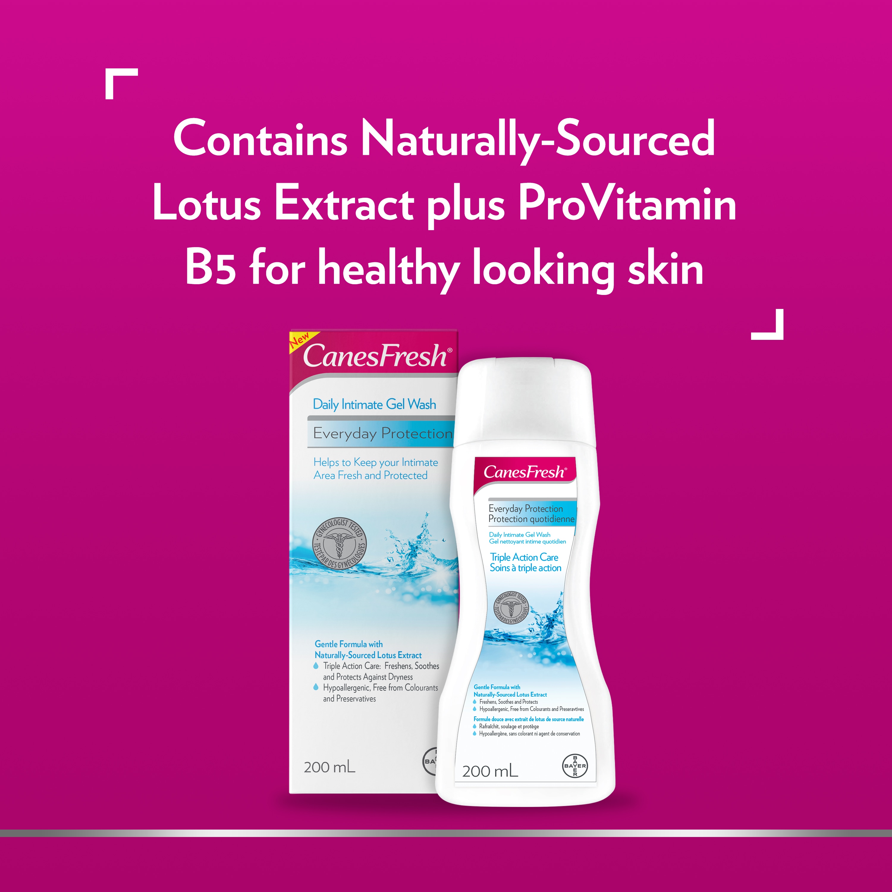 CanesFresh® Everyday Protection Gel Wash freshens, soothes and protects against dryness around your sensitive intimate area.