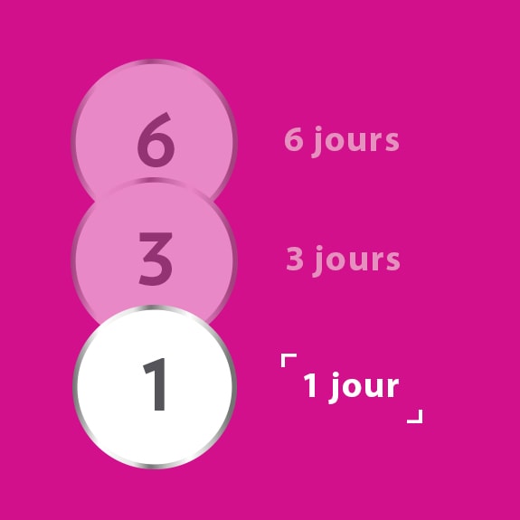 Différentes posologies selon vos préférences : Les traitements Canesten® ou CanesOral® de 1 jour sont pratiques et efficaces et continuent d’agir pendant plusieurs jours jusqu’à la guérison de l’infection, les traitements Canesten® de 3 jours vous permettent de sentir que le produit agit pendant le traitement et notre traitement Canesten® de 6 jours est recommandé à celles qui préfèrent un traitement plus long.