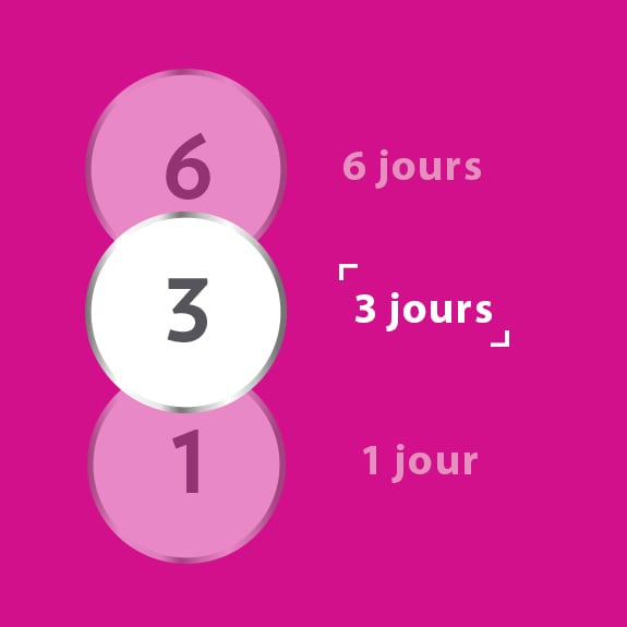Différentes posologies selon vos préférences : Les traitements Canesten® ou CanesOral® de 1 jour sont pratiques et efficaces et continuent d’agir pendant plusieurs jours jusqu’à la guérison de l’infection, les traitements Canesten® de 3 jours vous permettent de sentir que le produit agit pendant le traitement et notre traitement Canesten® de 6 jours est recommandé à celles qui préfèrent un traitement plus long.