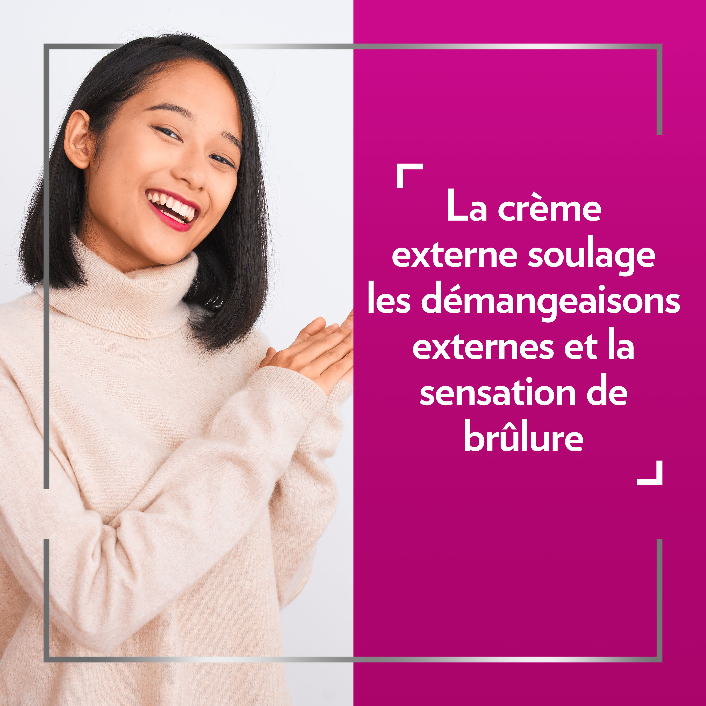 Soulagement apaisant et efficace des symptômes externes de l’infection vaginale à levures, comme les démangeaisons et la sensation de brûlure